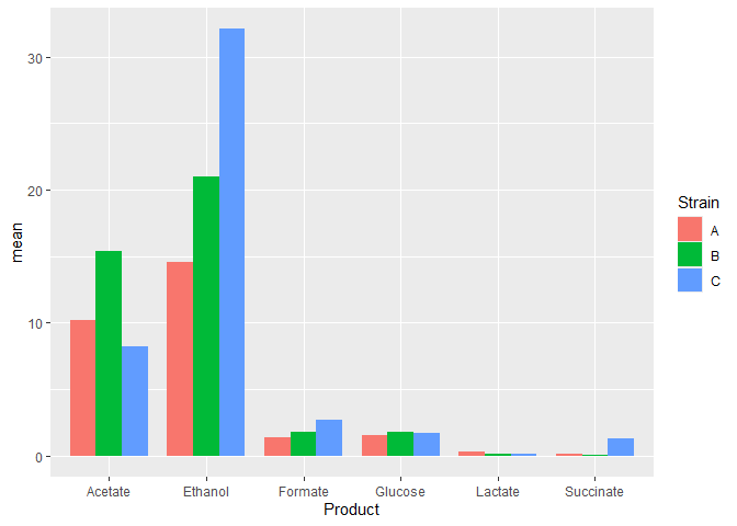 ggplot(mapping = aes(x=Product, y=mean, fill=Strain)) +